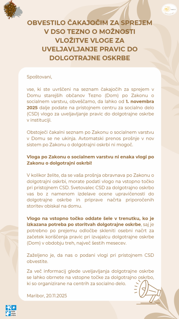 V Domu starejših občanov Tezno trenutno biva 222 stanovalcev.